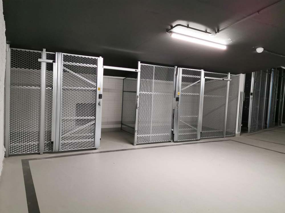 Ein moderner Keller braucht heute weit mehr als nur einfache Abtrennungen. Unsere Systeme bestehen aus robusten Pfosten, hochwertigen Gittern, stabilen Rahmen und integrierten Schlosslösungen. Der innovative Griff, der direkt in der Achse des Pfostens sitzt, schützt vor Beschädigungen und sorgt gleichzeitig dafür, dass kein wertvoller Platz verloren geht. Die verwendeten Stahlelemente sind widerstandsfähig, langlebig und bleiben durch ihre luftdurchlässige Konstruktion hygienisch und geruchsfrei. Damit schaffen wir funktionale Lagerräume, die den Alltag der Bewohner erleichtern und ein hohes Maß an Sicherheit bieten.